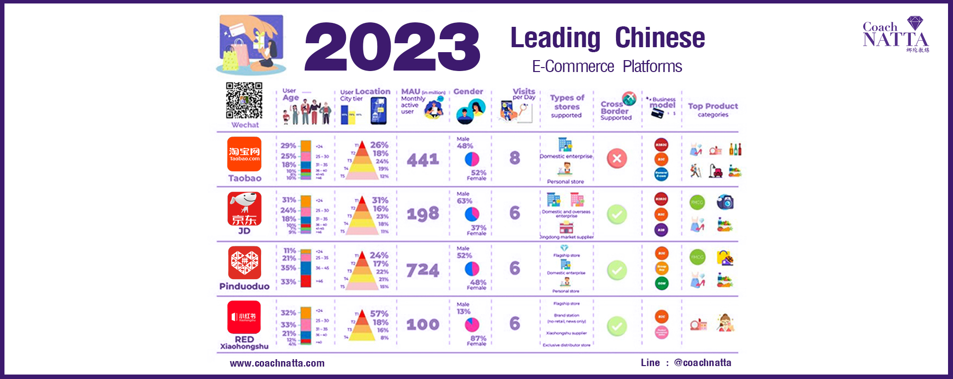 - “พินตัวตัว (Pinduoduo)” แพลตฟอร์ม E-commerce ในเครือ Alibaba และ JD.com ซึ่งมุ่งเน้นเจาะกลุ่มผู้บริโภคในพื้นที่ชนบท เป็นสำคัญ