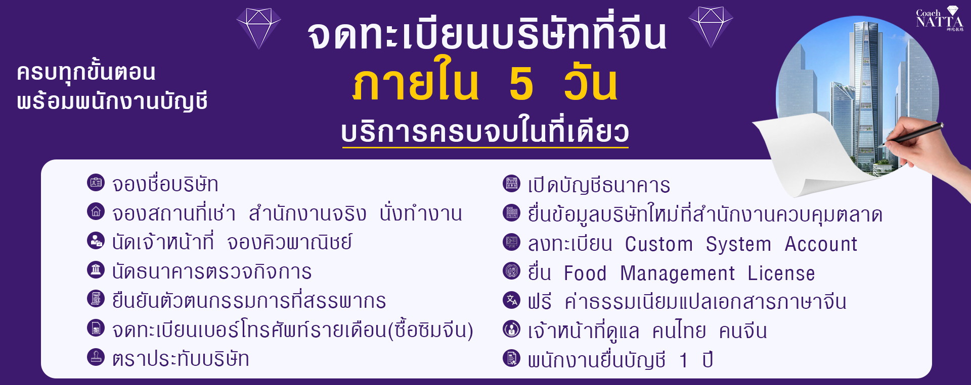การจัดตั้งบริษัท แล้วเสร็จภายใน 5 วันหลังจากเอกสารถึงจีน