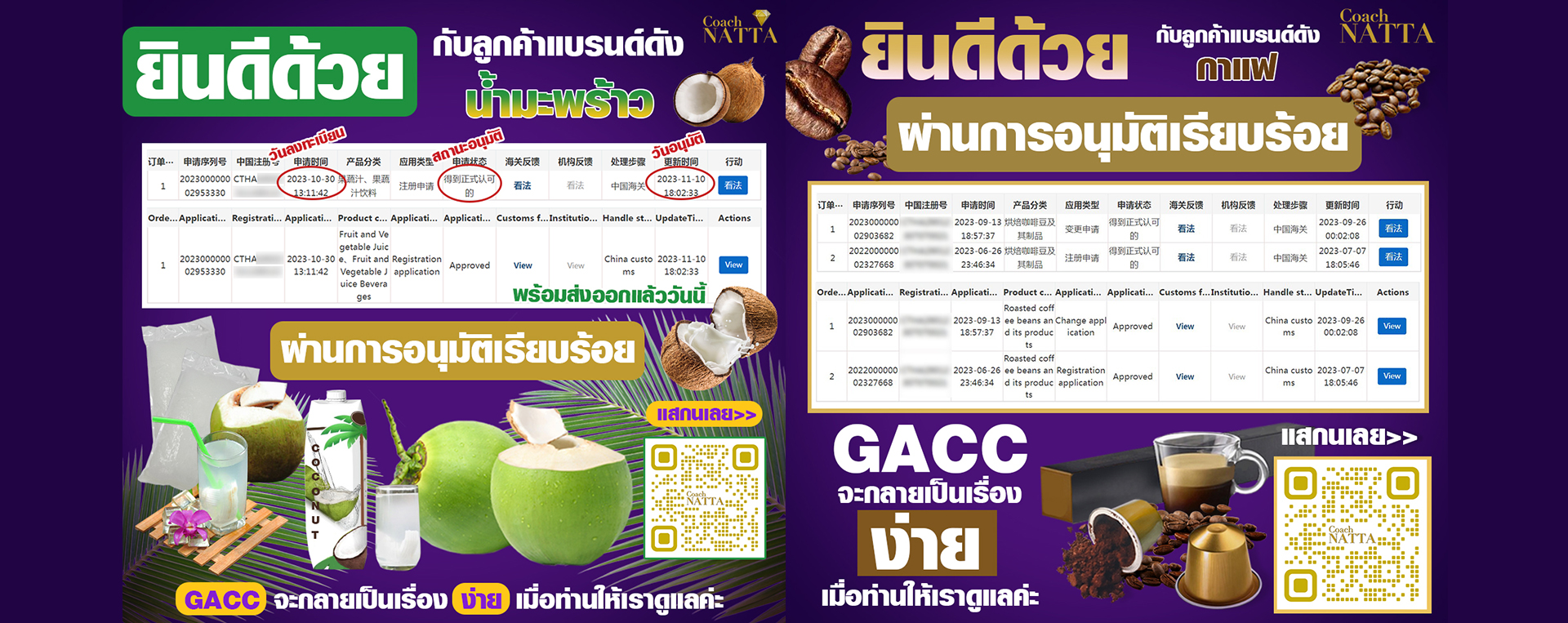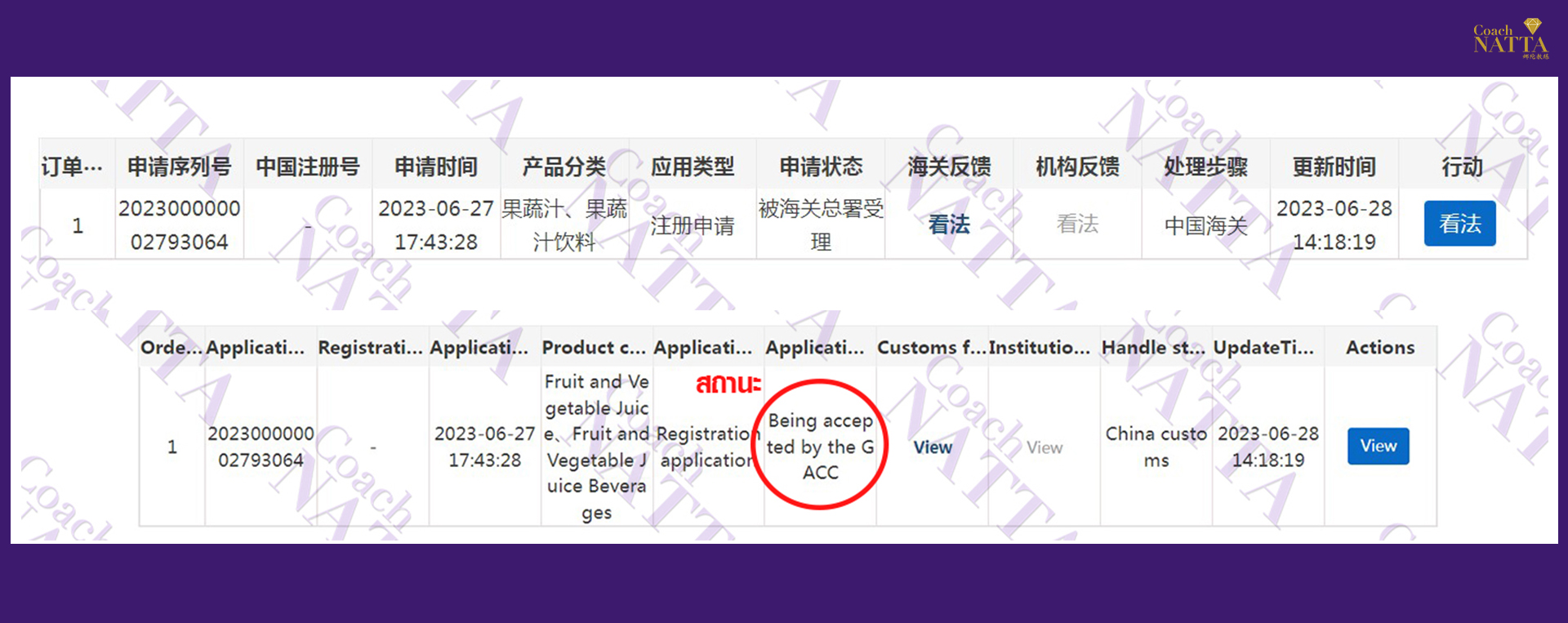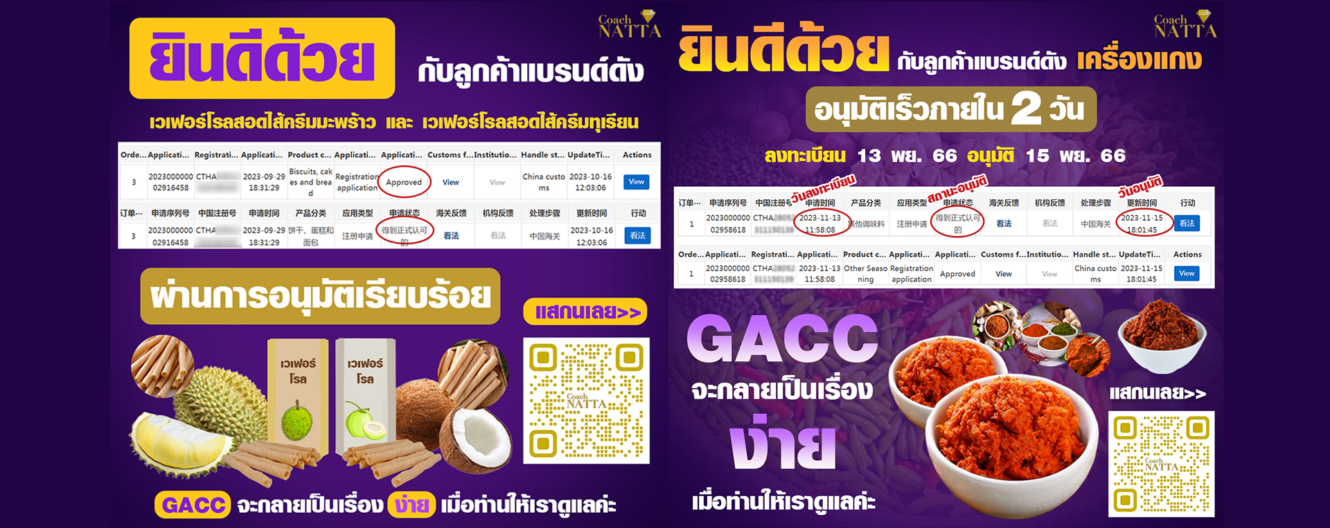 ผ่านการอนุมัติ ได้เลข GACC ในวันที่ 30/06/2566 ใช้เวลาอันรวดเร็วโดยทีมงานมืออาชีพ