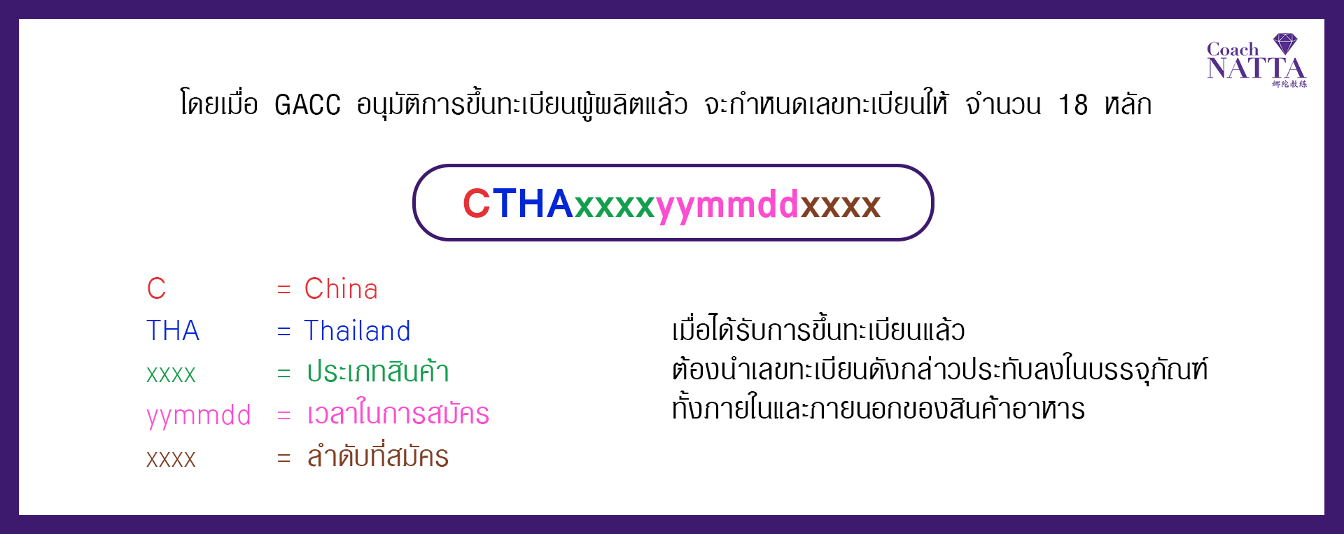 ระเบียบดังกล่าวกำหนดให้ผู้ผลิตอาหารจากต่างประเทศต้องมีการขึ้นทะเบียนกับหน่วยงาน GACC ก่อนการ ส่งออกไปยังจีน โดยแบ่งสินค้าเป็น 2 กลุ่ม ได้แก่