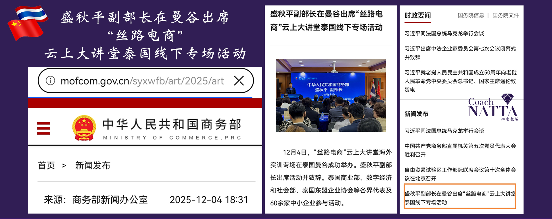 盛秋平副部长在曼谷出席“丝路电商”云上大讲堂泰国线下专场活动