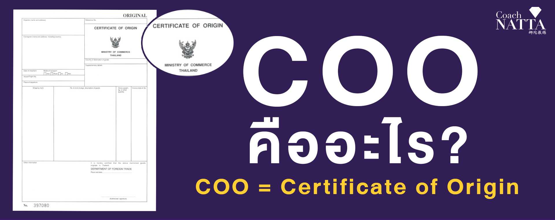 • Certificate of Origin (COO) หรือใบแสดงถิ่นกำเนิดสินค้า